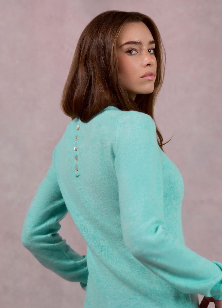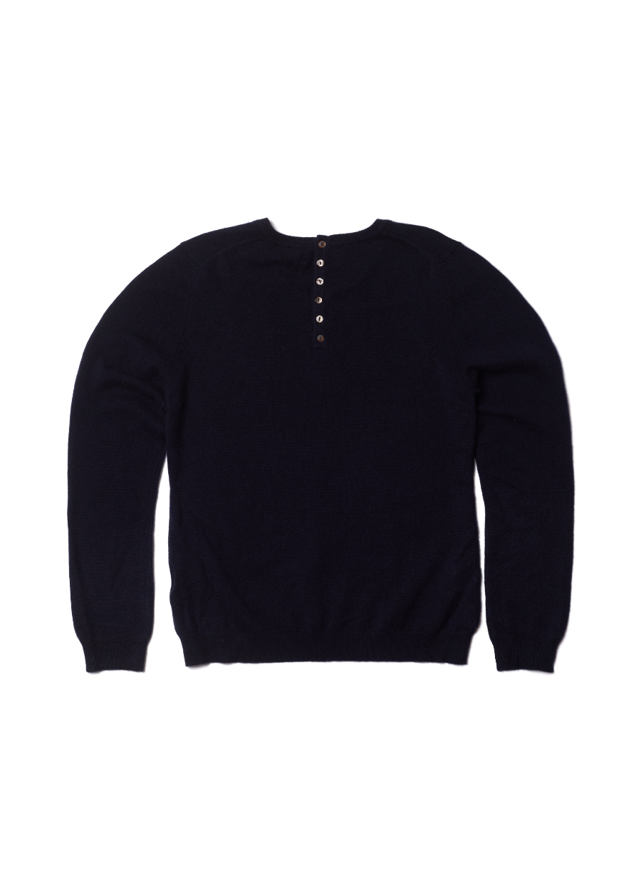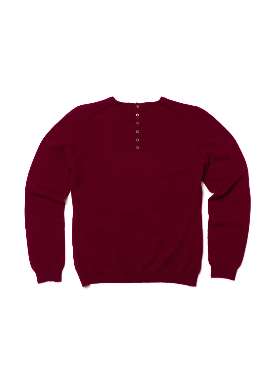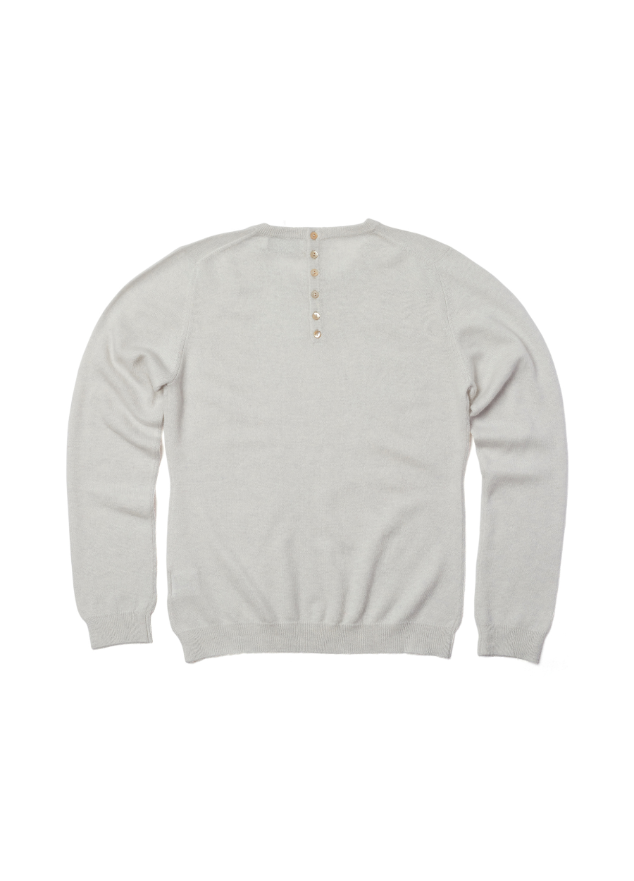 All in the details. A crew-neck knit to reach for season after season, defined by a subtle back-button fastening and a relaxed silhouette that transitions from weekday to weekend.