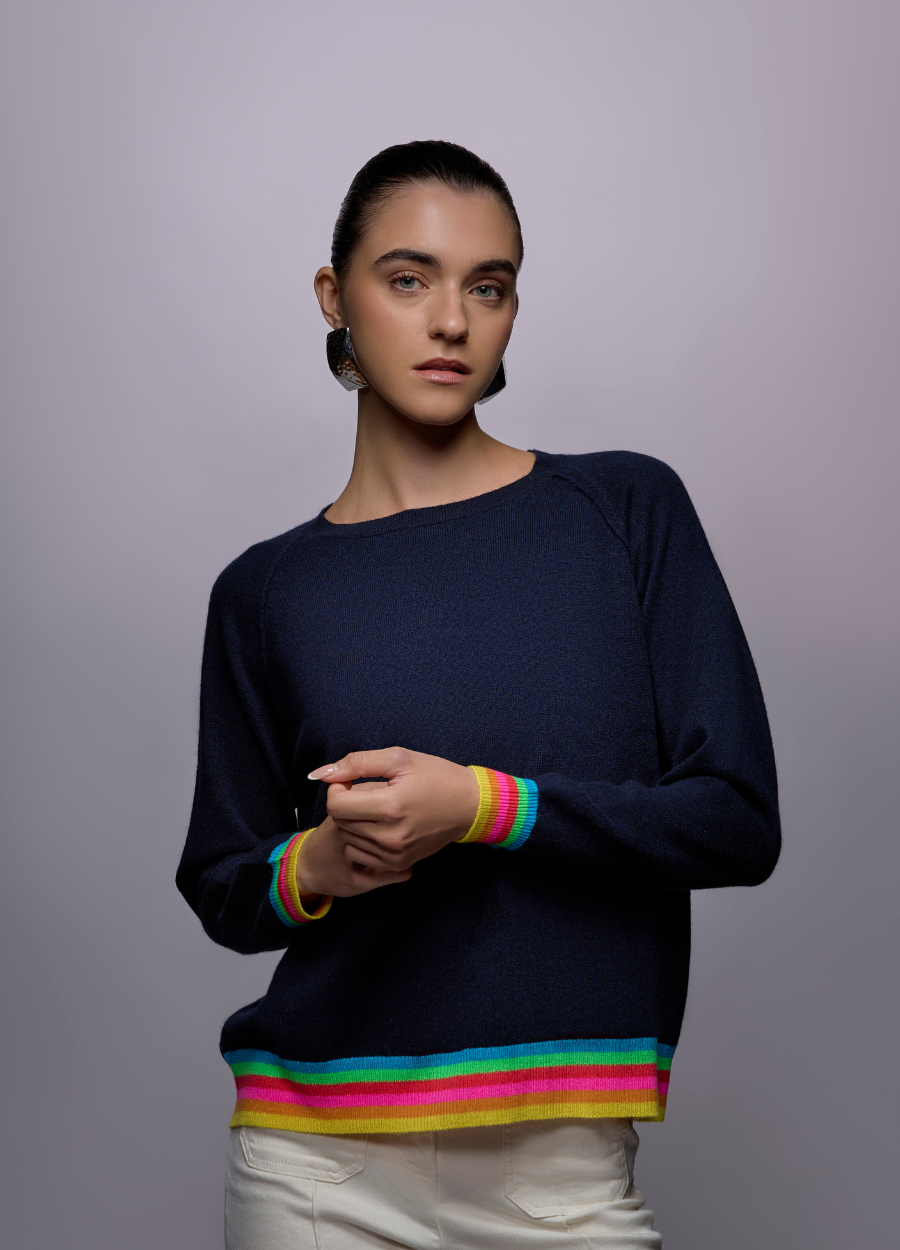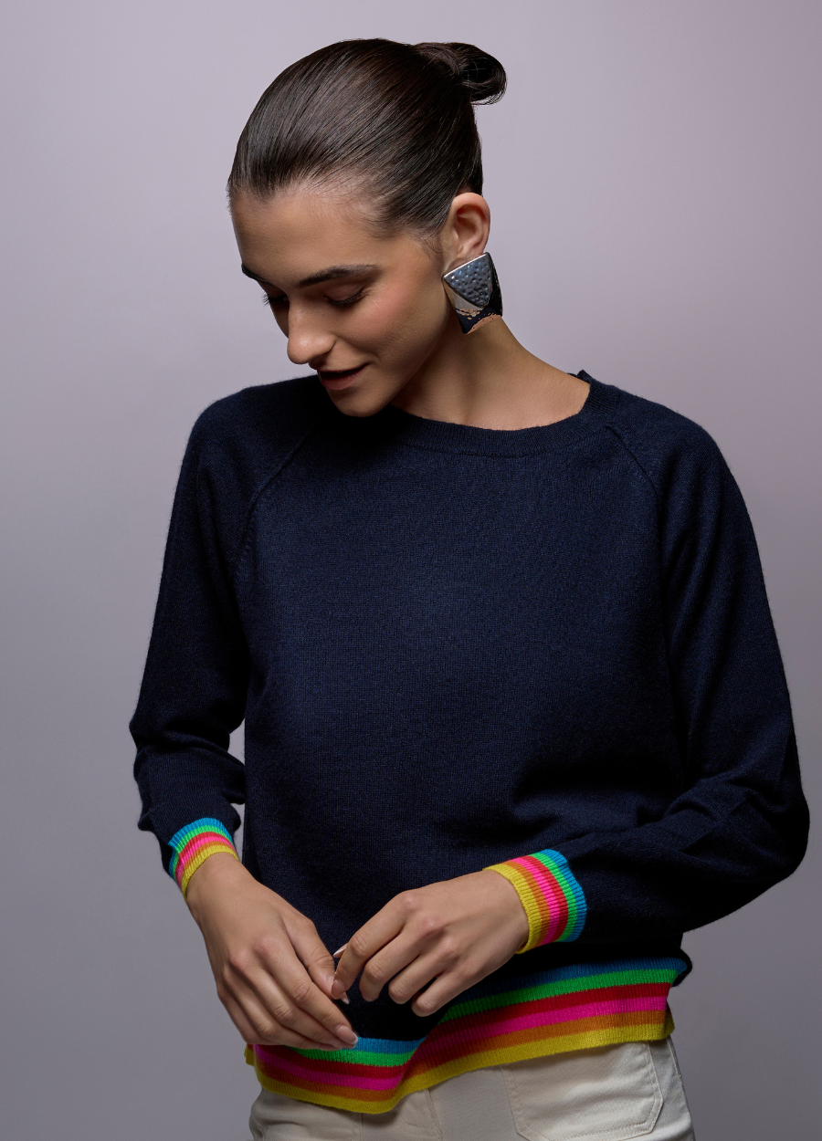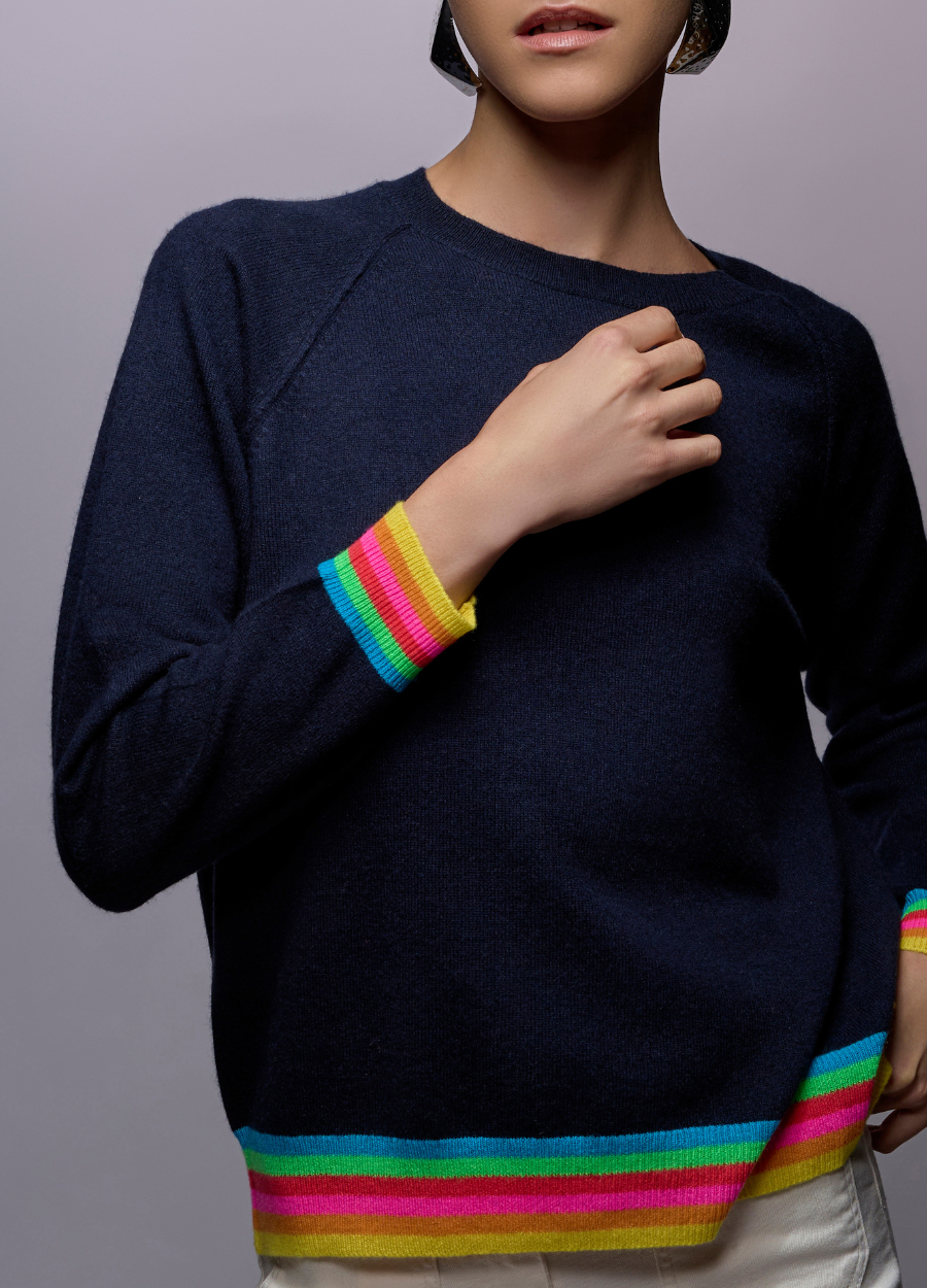 Tipped adds joy with rainbow striped trims. Easy to wear, hard to ignore.