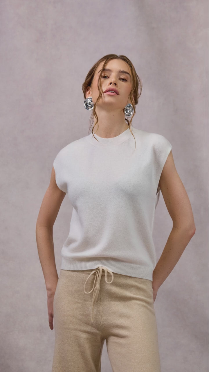 A reimagined take on the classic tank with cap sleeves, a wide crew neckline and a streamlined fit.